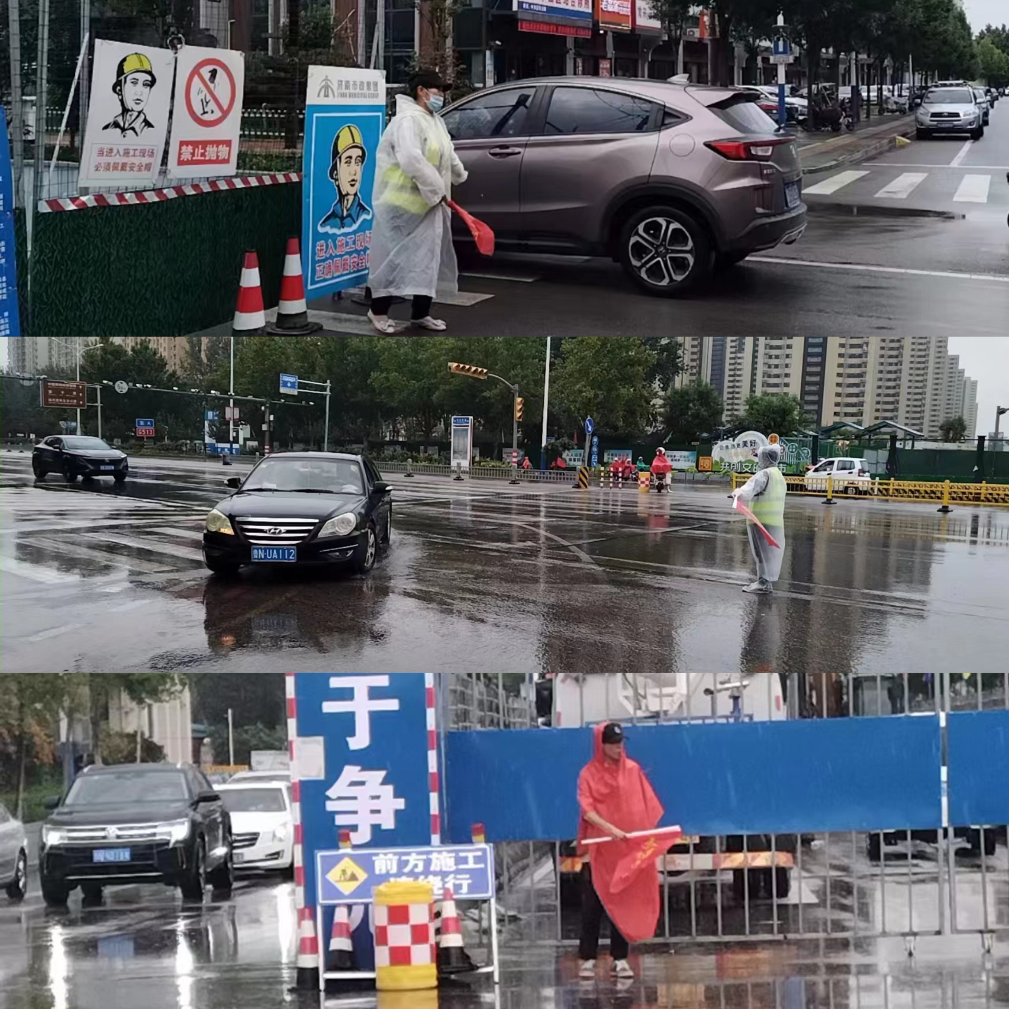 一公司承接多處道路交通協管勤務且點位較為分散,7月28日下午,副總經理王洪林深入勤務現場,與交警部門積極對接,對執勤點位安全隱患進行排查,并要求各分管隊長務必高度重視,對存在安全隱患的警示牌,迅速對接施工方對其進行加固,以免發生事故,同時叮囑隊員們在做好自身防護的前提下,嚴格落實好各項防汛舉措,確保道路安全暢通。由于城區突降大雨,加之正值下班高峰時段,車流量不斷加大,車輛通行緩慢,王洪林也加入交通疏導隊伍,與隊員們一起冒雨疏導過往車輛,緩解交通通行壓力。
