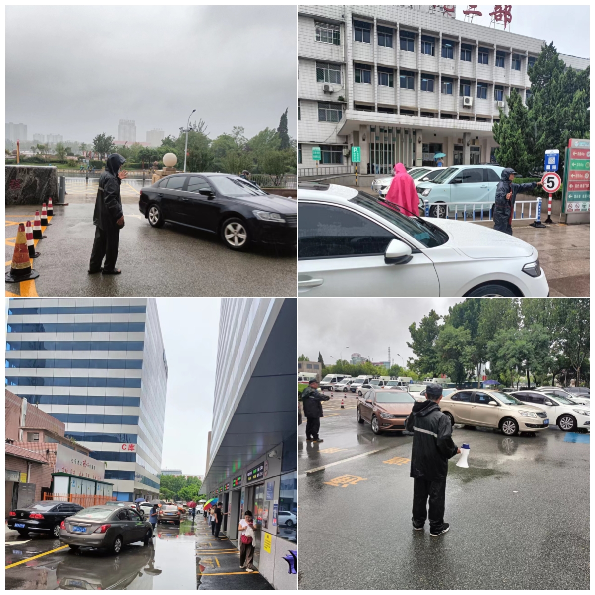 因連日降雨,大酒店停車場場地積水泥濘無法停車,就診車輛全部涌入人民醫院內,停車場工作壓力驟增,930個立體車庫車位、280個地面車位全天候不間斷循環停車,僅7月30日一天,就達到歷史最高峰八千余車次,面對空前壓力,隊員們始終冒雨指揮車輛,堅守崗位、盡職盡責,確保就診車輛有序停放,受到院方充分肯定和贊揚。