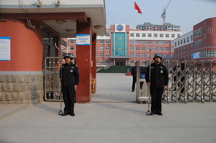 期間,共對慶云云天學院、金書教育集團、第五中學、渤海小學、實驗小學、好幼兒園等13所校園安保工作進行了逐一檢查。李建德總經理向教育局領導詳細介紹了各校安保隊員、器械裝備、管理制度落實情況及應急處突預案的基本要點。教育局領導對公司高起點、高要求、高定位的校園安保工作給予高度評價,并對公司一流的管理、一流的服務、一流的裝備表示非常滿意。對我公司在慶云承接的校園安保工作給予厚望。