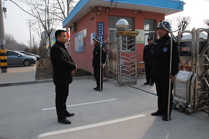 2月28日上午,德州市恒威安保服務有限公司慶云分公司總經理李建德、大隊長李雙陪同德州市慶云縣教育局安全科孫科長、楊科長視察指導我公司承擔的高校、中小幼校園安保工作。