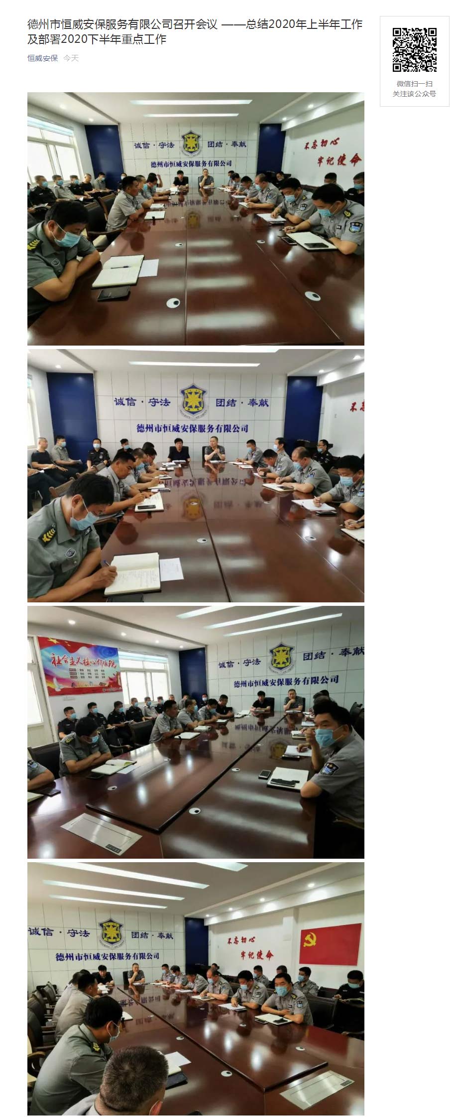 德州市恒威安保服務(wù)有限公司召開會(huì)議 ——總結(jié)2020年上半年工作及部署2020下半年重點(diǎn)工作